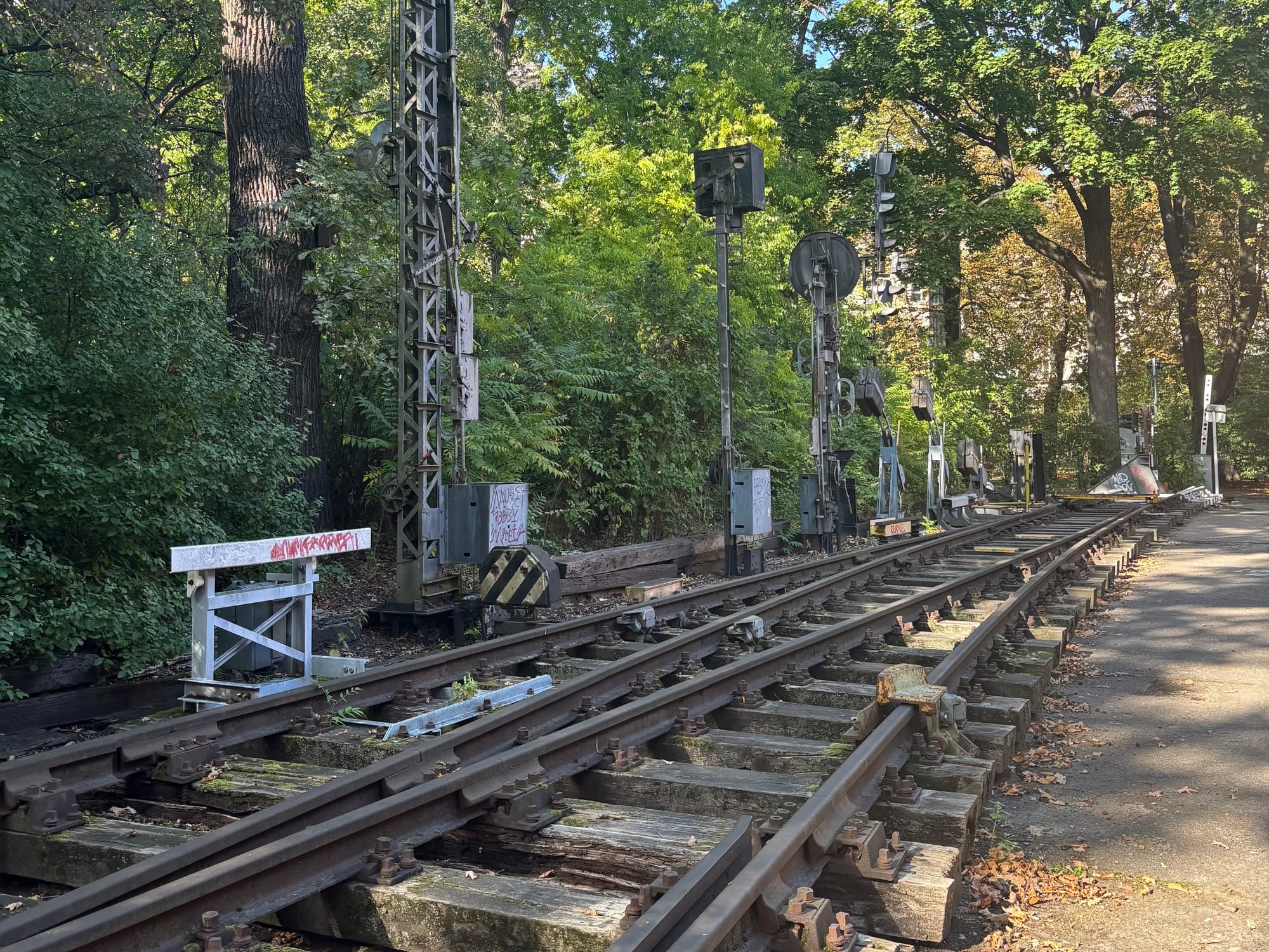 Übrigens gehört das Betriebsfeld zur Uni und wird auch für universitäre Forschung genutzt. Beispielsweise wurde ein Experiment gemacht, wie sich das weiße Anmalen des gesamten Oberbaus (Schienen, Schwellen und Schotter) auf die Hitzeentwicklung in der Umgebung auswirkt. Italien malt schon die Schienen weiß an und kann dadurch die Erwärmung reduzieren. Das Anmalen des gesamten Oberbaus bewirkt ein geringeres Aufheizen um mehrere Grad. Jetzt überlegen sie, einen Testbereich auf der Berliner S-Bahn einzurichten. Dort also im Regelbetrieb den Oberbau anzumalen und dann die Temperaturentwicklung zu erfassen. Das Problem ist nur, dass das Anmalen des Oberbaus durchaus wartungsintensiv ist und die BVG (und andere Eisenbahninfrastrukturunternehmen) eher nicht machen möchten. Aber insbesondere für Innenstädte kann so eine Abkühlung in der Umgebung der Gleisanlagen durchaus spannend sein, so im Hinblick auf Klimaerwärmung…